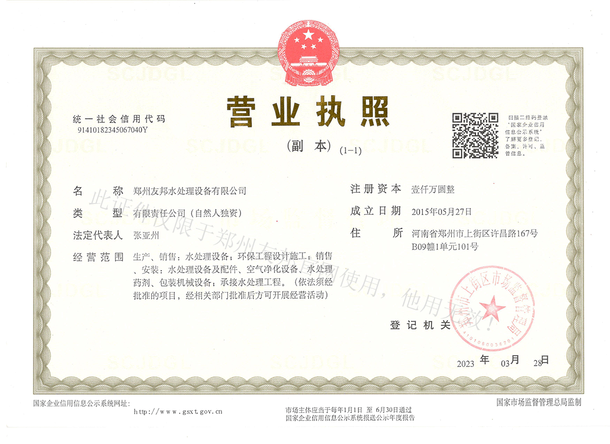 • 2020.07.03 鄭州友邦水處理設(shè)備有限公司——營(yíng)業(yè)執(zhí)照